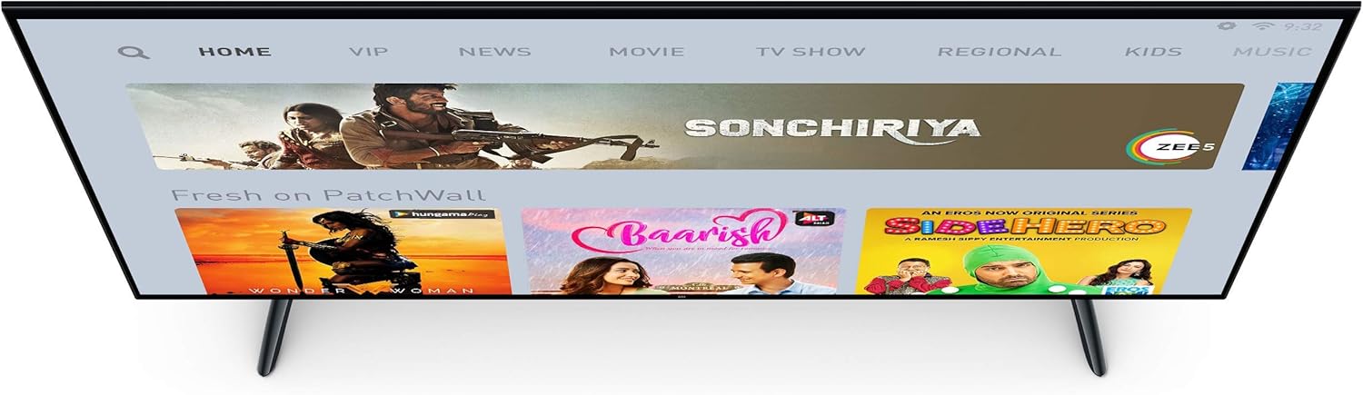 - Smart TV features : | PatchWall with Android TV and Set-Top Box Integration | Chromecast built-in | 700,000+ hrs of Content | Mi Remote with Google voice search | Content across 15 languages | Play Store, YouTube, Play Movies, Play Music | Hotstar, Voot, Sony LIV, Hungama, Zee5, Eros Now, Alt Balaji, Sun NXT, Hooq, TVF, Epic ON, Flickstree| Prime Video coming soon | Mi Remote controls TV, set-top box and smart home devices eg. Mi Air Purifier